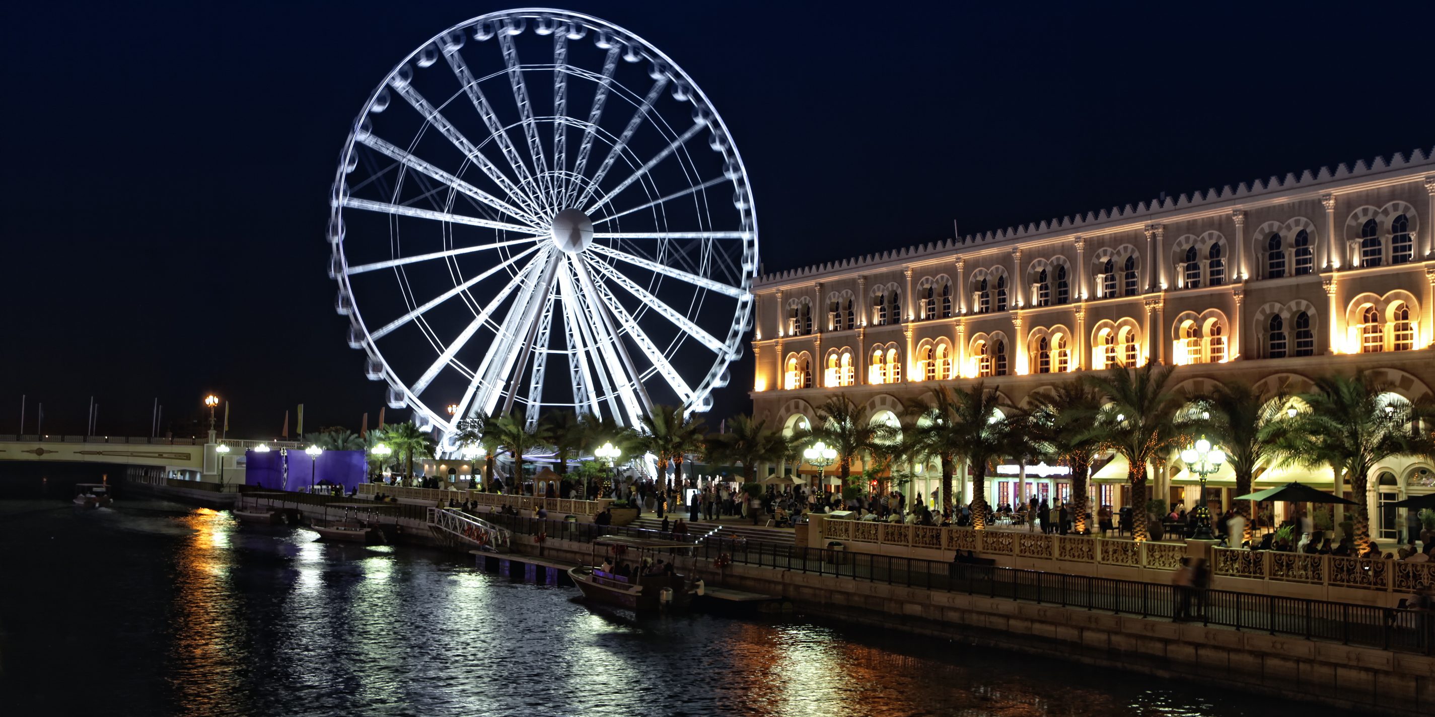 Al Qasba is a premier tourist attraction where you can admire the excellent Eye of the Emirates. This 60-meter-high Ferris wheel offers stunning views of the city skyline.